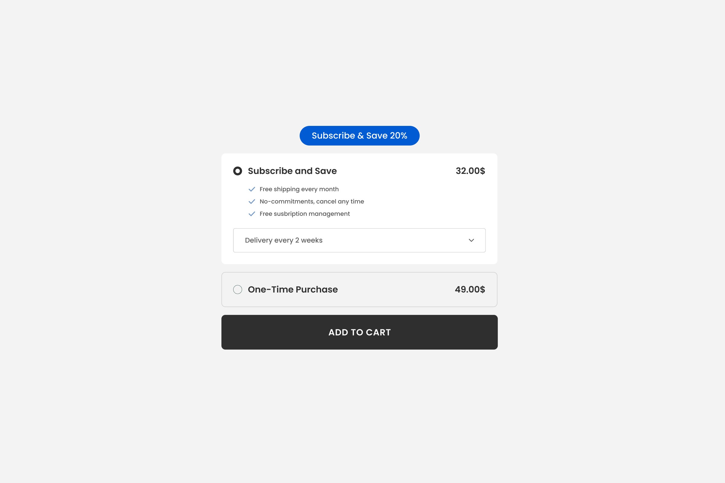 A clear subscription widget that doesn’t confuse one-time buyers