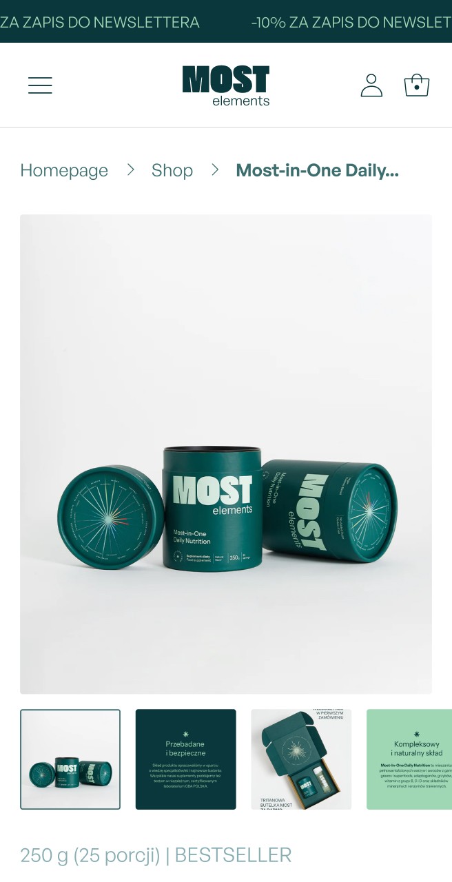 Building credibility was critical for MOST Elements. We designed detailed product pages that explain both the brand philosophy and specific supplement benefits, going deeper than typical product presentations.