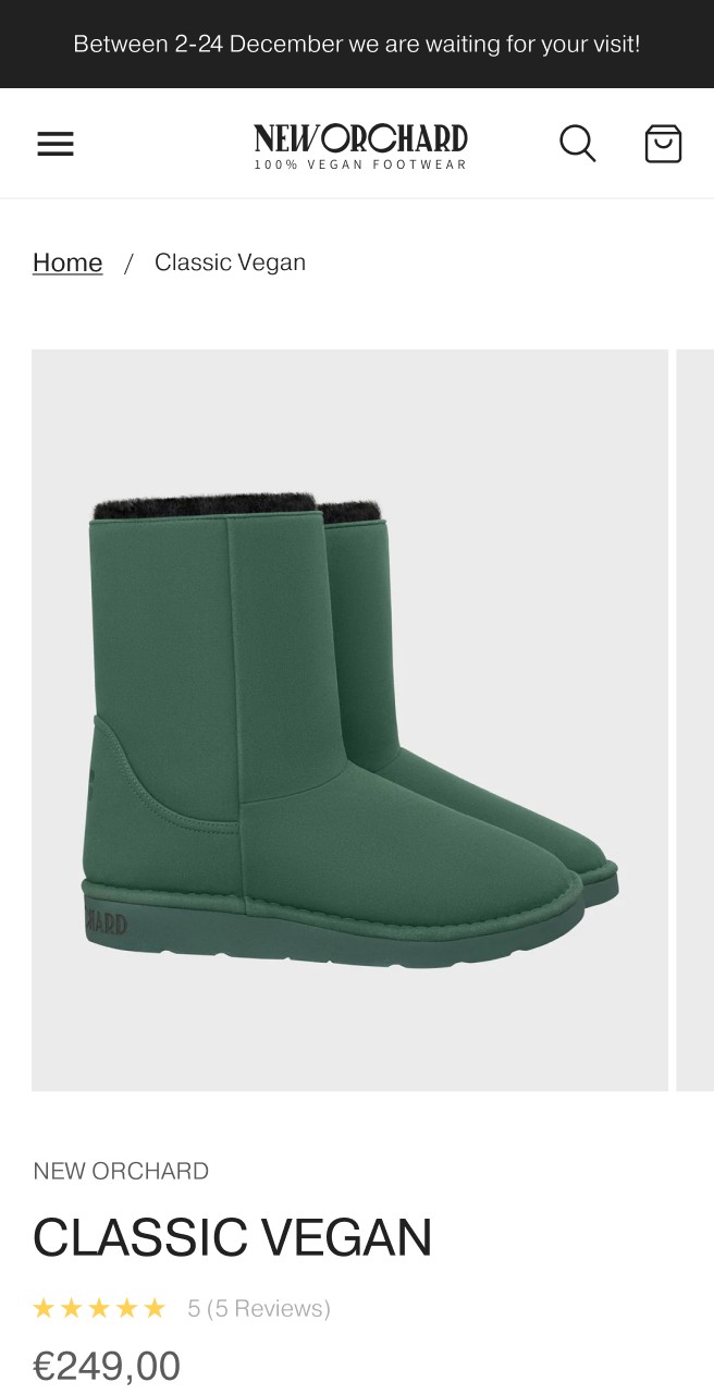 New Orchard is a Swiss brand offering vegan footwear produced in Italy using only animal-friendly materials, combining durability, comfort and responsible design. The existing store looked outdated and failed to engage customers, leading New Orchard to work with Hyper Effekt.