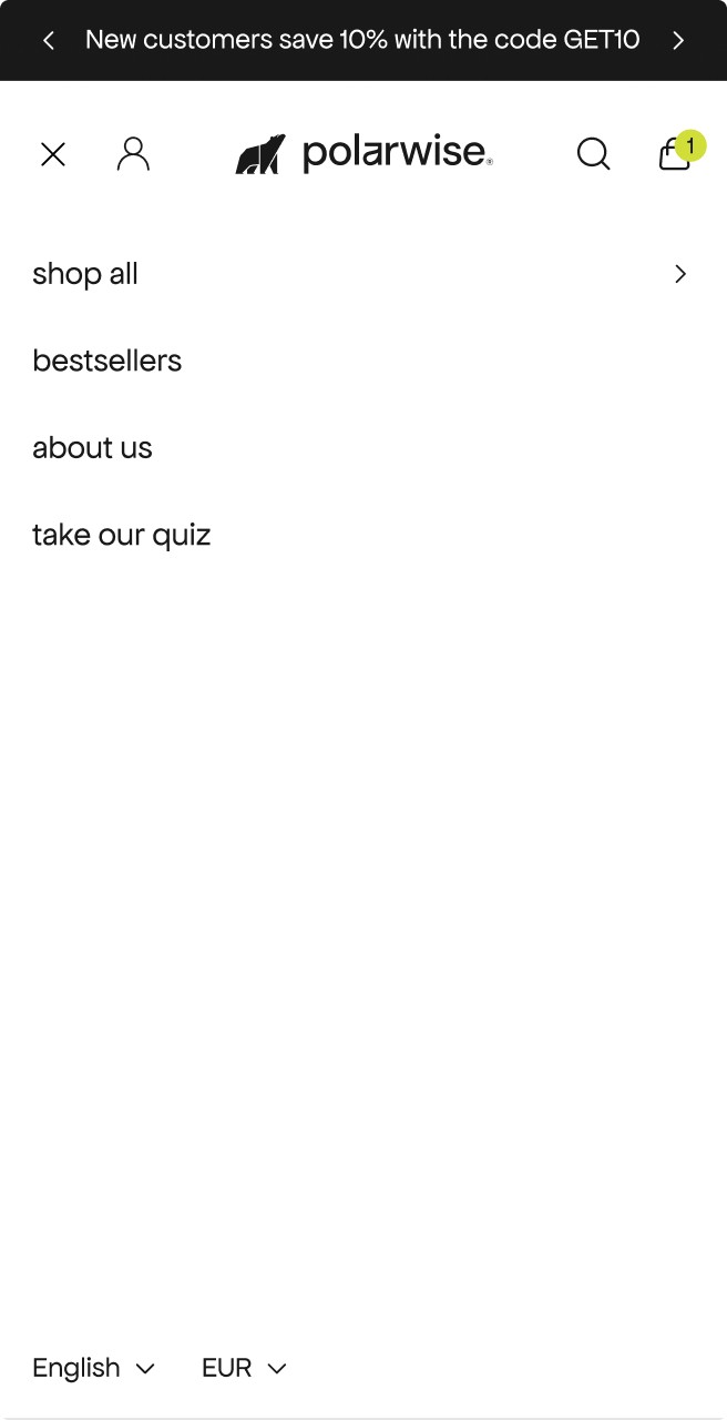 The rebuilt store reflects Polarwise's new visual identity and strengthens brand consistency across channels. Intuitive navigation combined with educational product content reduced purchase uncertainty and improved conversion rates.